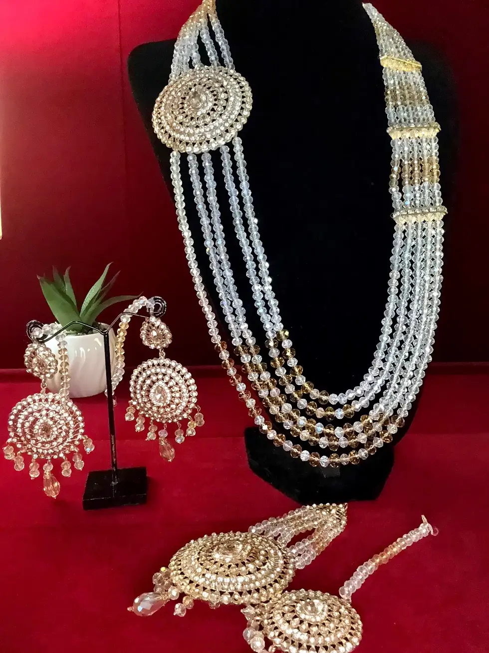Beautiful Crystal Beads Mala set with Elegant Earrings ,Tikka & jhomar